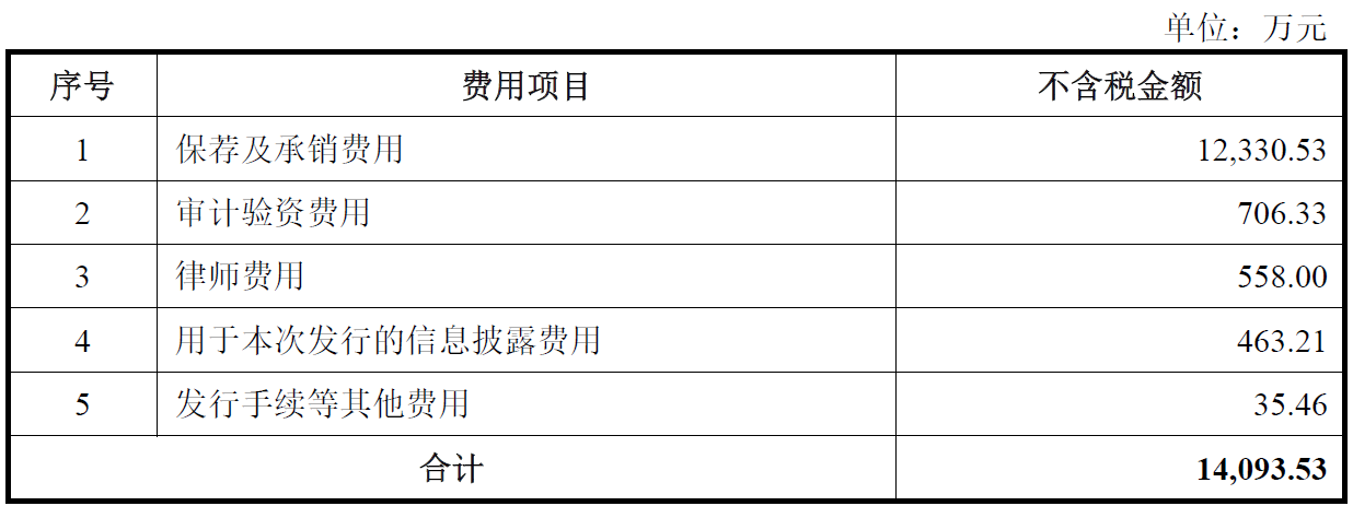 友车科技公司本次公开发行新股的发行费用合计14,093.53万元,其中保荐及承销费用12,330.53万元。