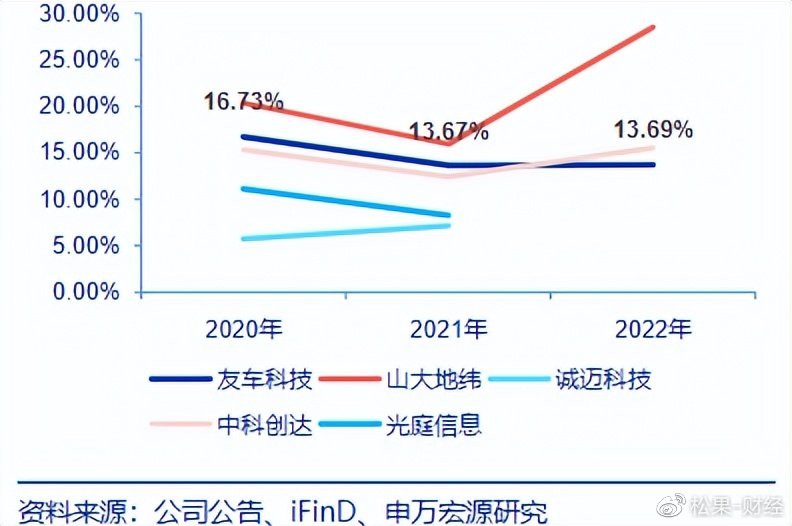 如果从毛利率水平来看人力成本带来的影响,那么“用人困扰”进一步凸显。据招股书显示,友车科技2020年至2022年综合毛利率分别为 44.81%、43.78%、40.03%,2022年毛利率出现一定幅度下滑,主要原因恰巧因为2022年公司人员平均薪酬的提高,友车科技为了保证项目交付质量,从而投入了更多的成本。