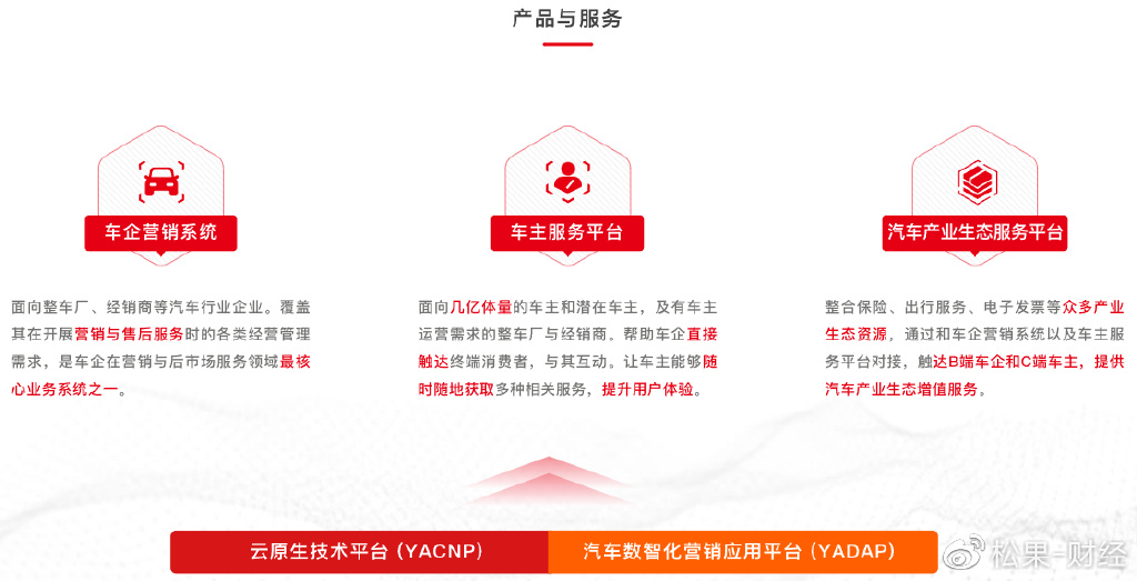 尽管2022年的比重有所下滑,但反映在实际产品上,仍可见“精耕细作”的用心。自研产品方面,友车科技利用核心技术打造了云原生技术平台和汽车数智化营销应用平台。两大平台为公司主营业务产品提供了强有力的技术支撑。其中,用友汽车云原生技术平台提供了云端部署的解决方案,并针对汽车行业应用的性能需求做了特殊优化,技术水平位于行业前列。