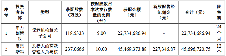 赛恩斯(688480.SH)披露首次公开发行股票并在科创板上市发行结果,如下: