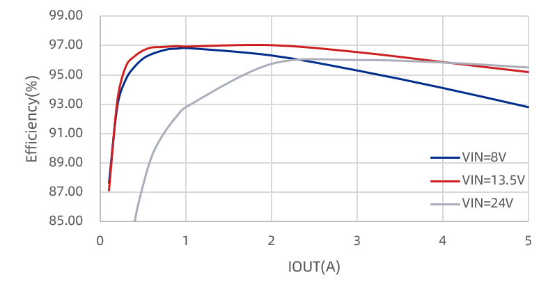 SC8748Q/SC8749Q 可实现超过 97%的峰值转换效率,连续输出最高 3A/5A 的电流,为车载应用提供高效稳定的电源支持。用户可通过 I2C 接口设置输入电压、开关频率、工作模式等参数,还可选择展频功能,以优化系统 EMI 性能。此外,产品提供输出过压保护、逐周期电流限制、输出欠压保护、输入过压和热关断保护等完善的安全保护功能。