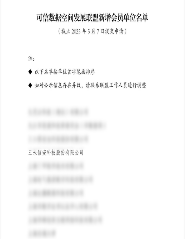 近日,三未信安科技股份有限公司正式成为可信数据空间发展联盟首批会员单位。