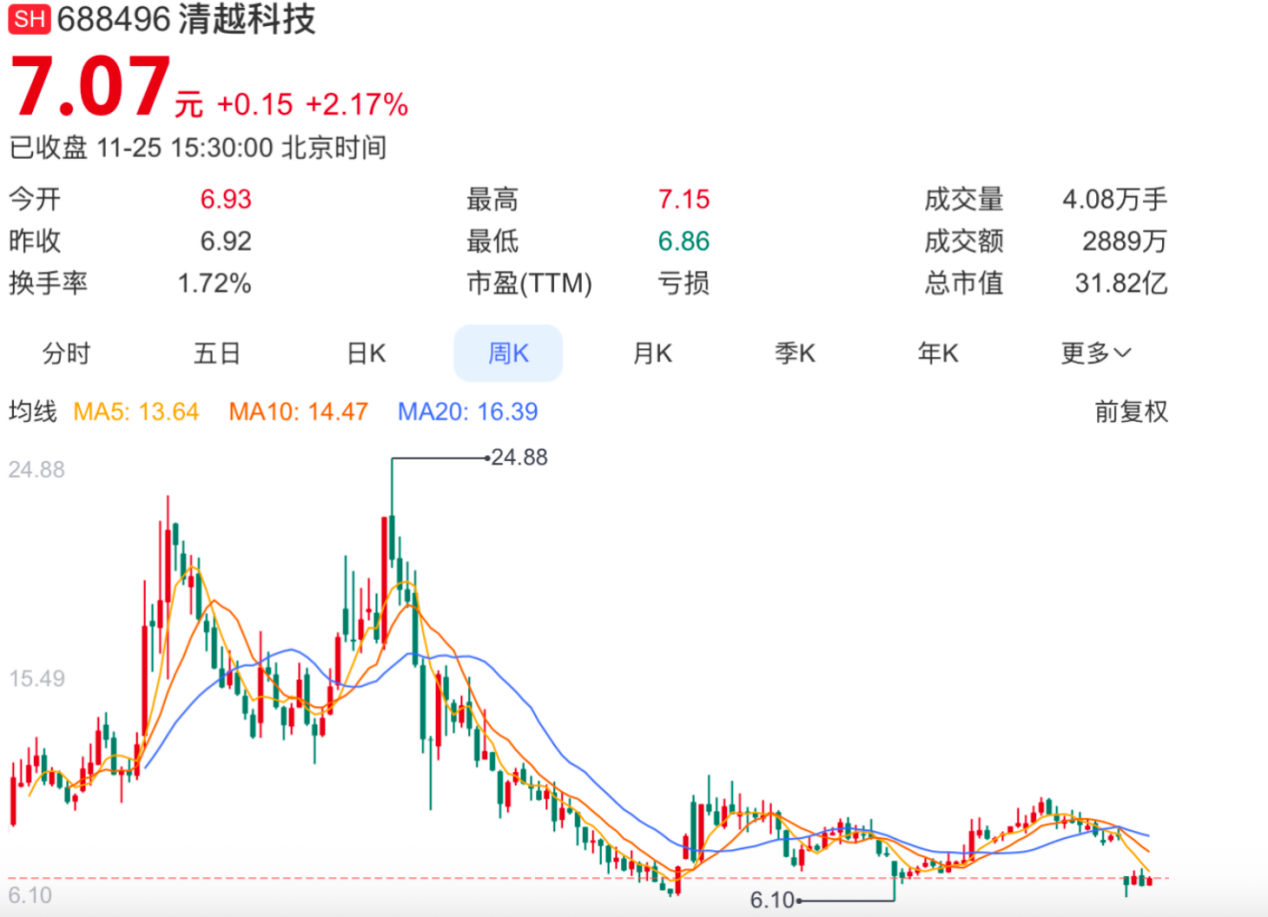为提振市场信心,董事长提议千万元级回购,但截至11月25日当日收盘, 清越科技 总市值已仅剩约32亿元。