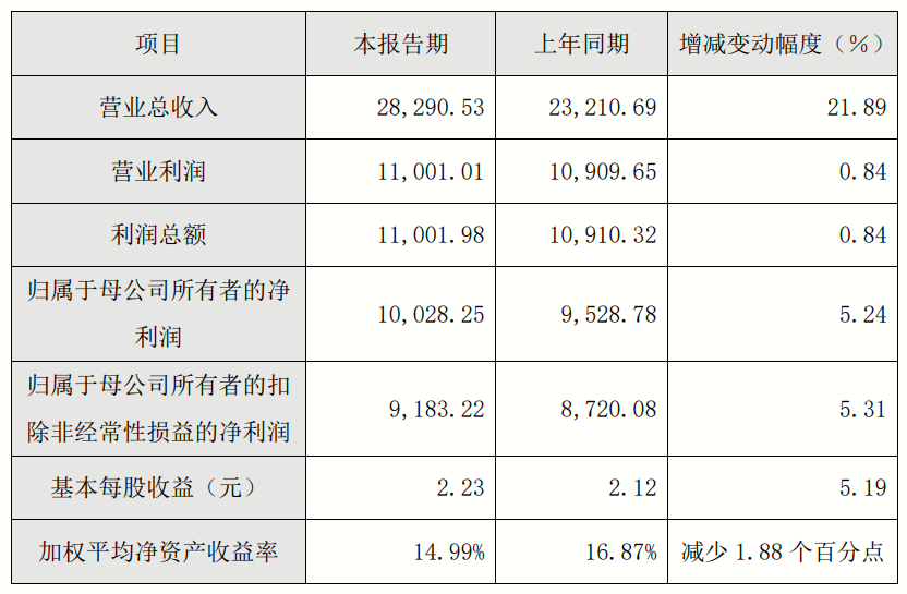 公告显示,公司2022年度实现营业总收入约2.83亿元,同比增长21.89%;归属于母公司所有者的净利润约1.00亿元,同比增长5.24%;归属于母公司所有者的扣除非经常性损益的净利润9183.22万元,同比增长5.31%。