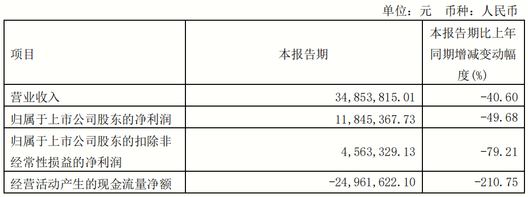 2023年第一季度,公司实现营业收入3485.4万元,同比下降40.60%,实现净利润1184.5万元,同比下降49.68%,实现扣非净利润456.3万元,同比下降79.21%。