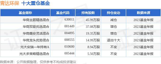 持有青达环保最多的基金为华商主题精选混合,目前规模为2.95亿元,最新净值2.274(4月17日),较上一交易日上涨1.7%,近一年下跌7.67%。该基金现任基金经理为伍文友。