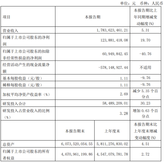 聚和材料2023年一季度营业收入为17.84亿元,同比增长5.31%;归属于上市公司股东的净利润为1.24亿元,同比增长19.70%;归属于上市公司股东的扣除非经常性损益的净利润为6094.98万元,同比下降40.76%;经营活动产生的现金流量净额为-5.78亿元。