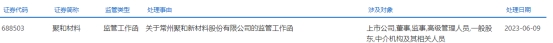 中国经济网北京6月12日讯上交所于6月9日披露了对聚和材料(688503.SH)的监管工作函,涉及对象为上市公司,董事,监事,高级管理人员,一般股东,中介机构及其相关人员。