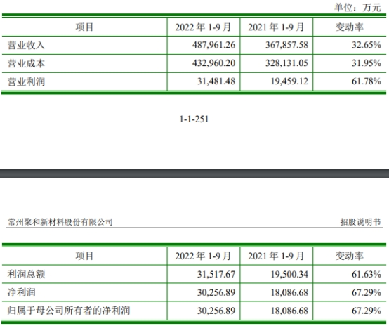 2022年1-9月,聚和材料营业收入为487,961.26万元,同比增长32.65%;净利润30,256.89万元,同比增长67.29%;经营活动产生的现金流量净额-82,045.09万元,上年同期为-92,484.36万元。
