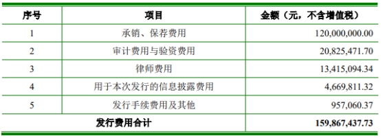 聚和材料本次发行费用(不含税)总额为15,986.75万元,其中,承销、保荐费用为12,000.00万元。