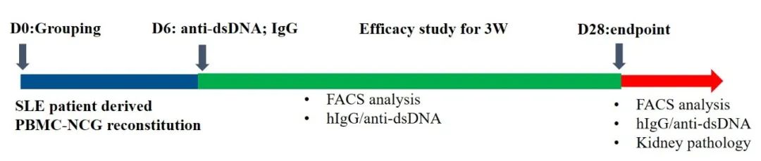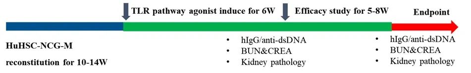 图3:基于HSC-NCG-M免疫重建SLE模型的药物非临床评价流程