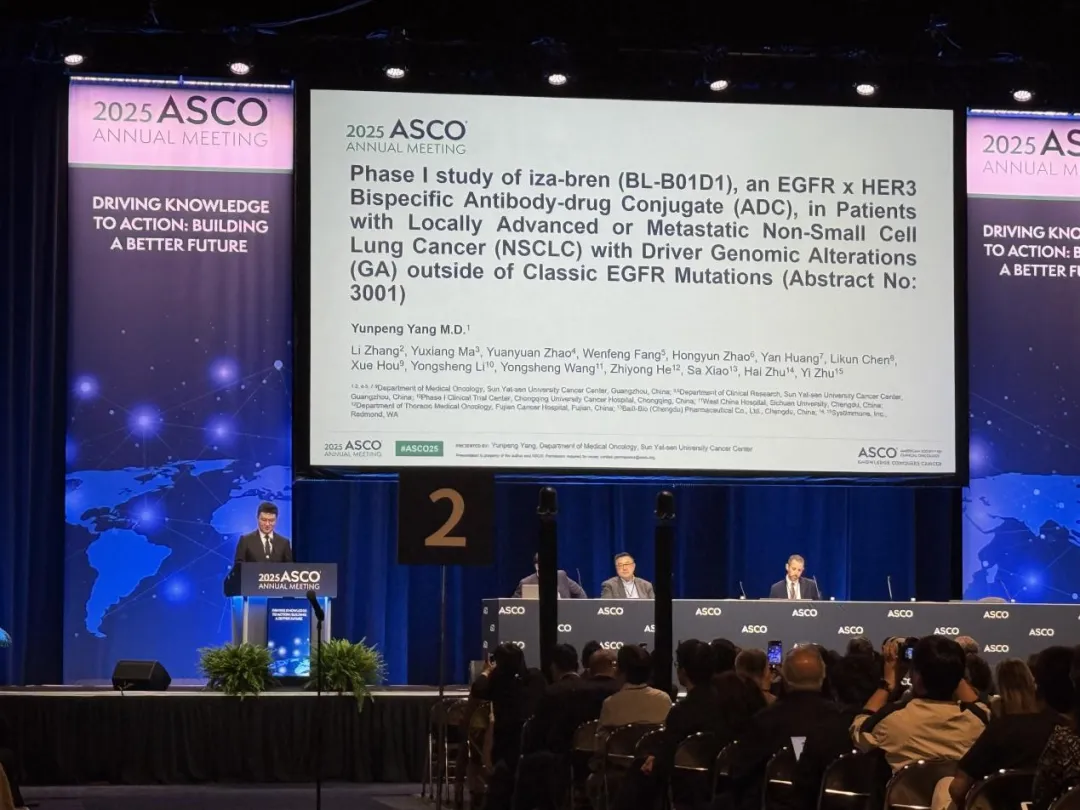 大会召开首日,百利天恒(688506.SH,股价292.55元,市值1173.13亿元)自主研发的同类首创(First in Class)、新概念(New Concept)且唯一进入III期临床阶段的EGFRXHER3双抗ADC(抗体偶联药物) iza-bren(BL-B01D1)携两项肺癌数据亮相ASCO会场,中山大学肿瘤防治中心杨云鹏教授、黄岩教授分别以口头汇报形式带来iza-bren在非小细胞肺癌和小细胞肺癌中的临床结果。