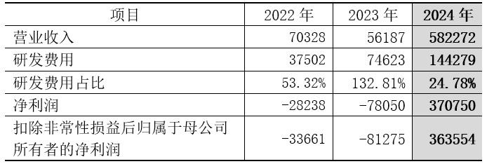 由于2024年巨额一次性首付款收入,百利天恒自身财务指标“大变脸”,通过下表可见营业收入、研发费用占比与净利润几项最基础财务指标的变化。表面看,百利天恒2024年经营业绩已然是属于较为成熟、经营收入稳定、具有一定规模的药企,更显示出一次性首付款收入的特殊性。