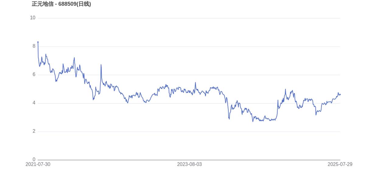 正元地信自2021年7月30日上市至今,已迎来4周年。从上市首日收盘价为8.31元、市值63.99亿元,到如今市值达到35.50亿元。
