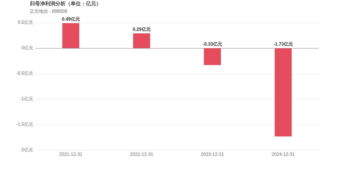 正元地信上市的2021年,当年实现归母净利润0.49亿元。截至最新完整财年的2024年,公司实现-1.73亿元的归母净利润,近年累计下降了455.29%。这4年间,正元地信有2年出现亏损。