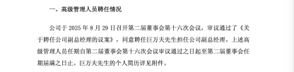 据公告内容显示,本次新任的巨万夫1975年出生,本科学历,拥有多年房地产行业管理经验,先后就职于深圳市先科房地产开发公司、宝能控股(中国)有限公司等企业,具备一定的实业管理背景。