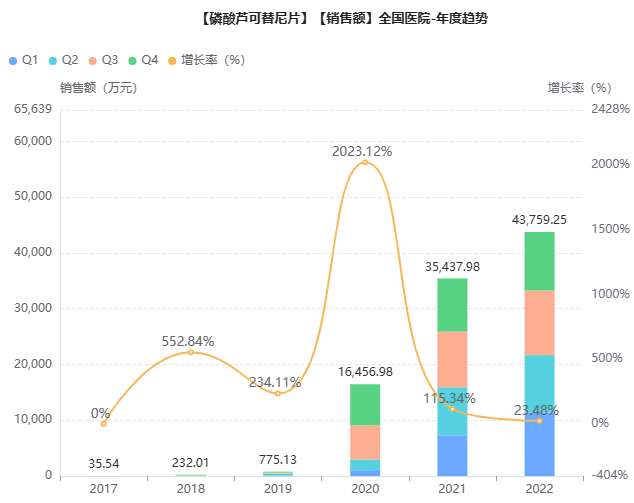 芦可替尼2017年—2022年全国医院销售数据库图片来源:药融云数据库