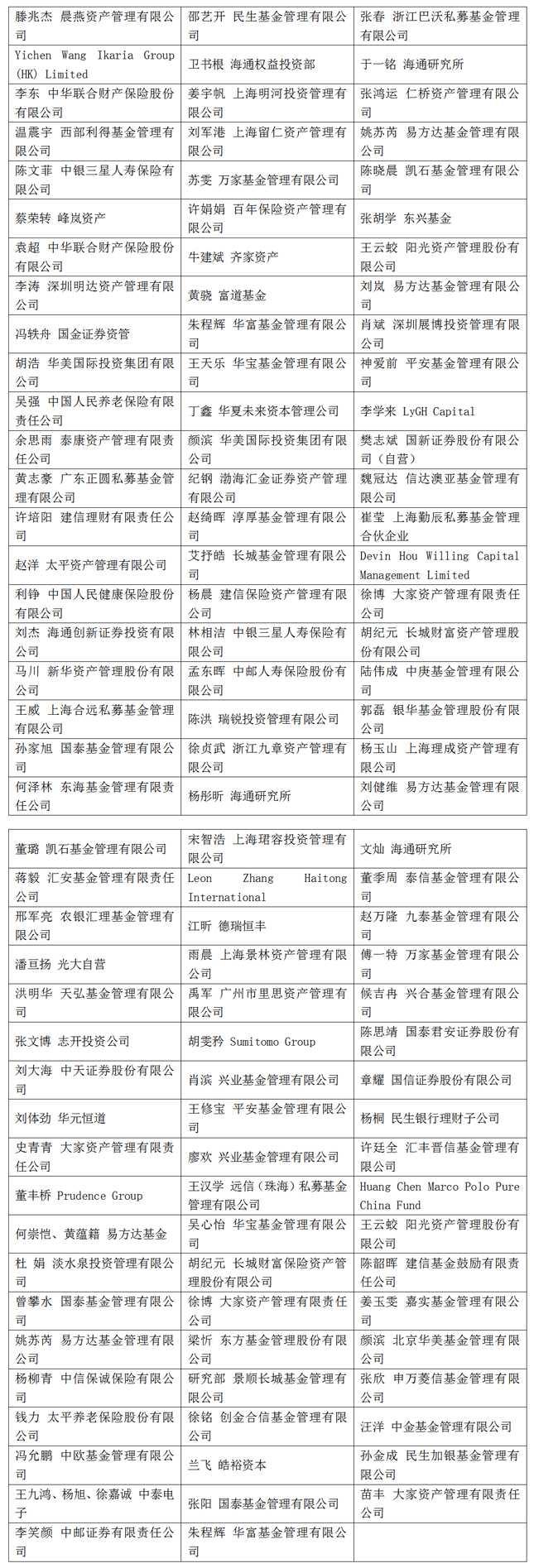 以下为机构详细名单: