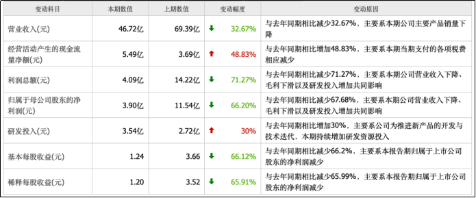 今年以来,奥特维的营收、净利双双下滑。前三季度实现营收46.72亿元,同比下降32.67%;归母净利润3.9亿元,同比下降67.68%。其中第三季度下降幅度最大,不仅归母净利润同比下降达到81.54%,利润总额更是同比下降了90.04%。在光伏设备龙头企业中,奥特维是业绩下降幅度最大的。