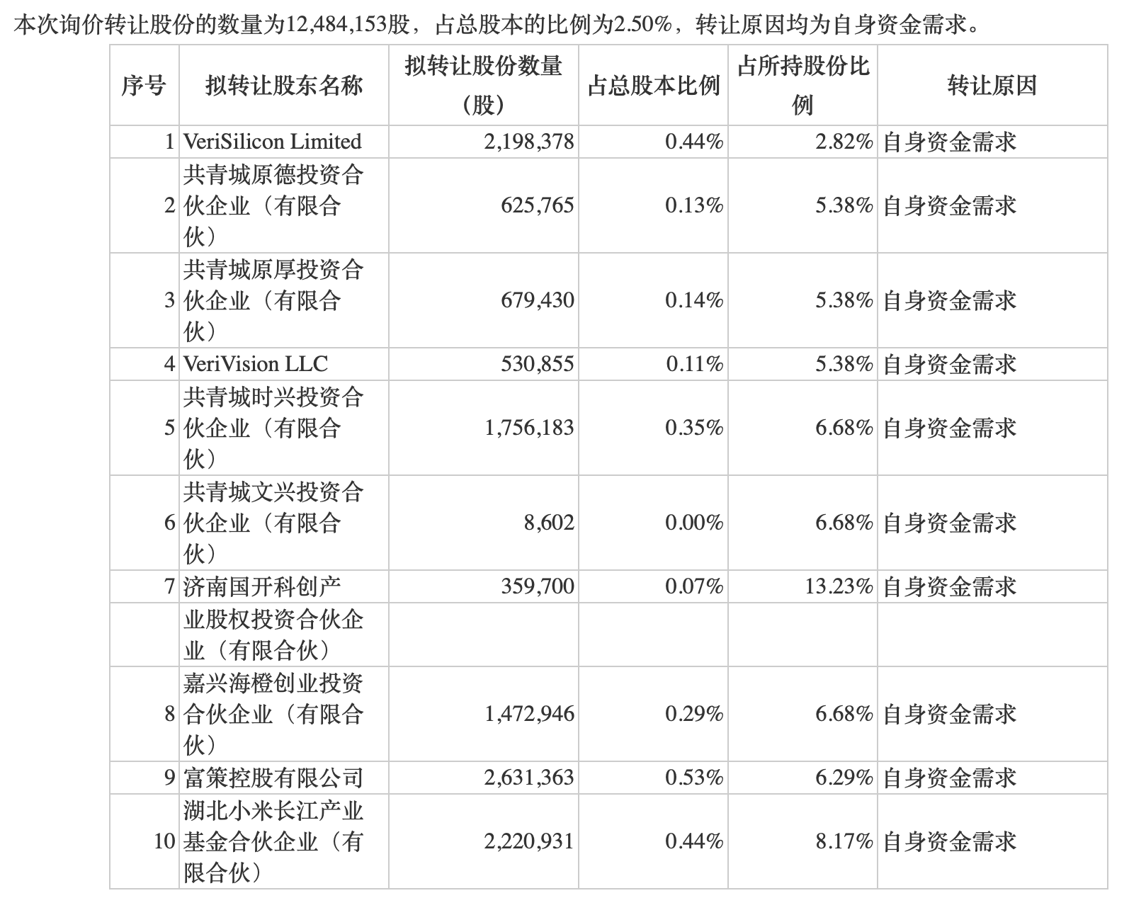 芯原股份披露,参与本次询价转让报价的机构投资者家数为25家,涵盖了基金管理公司、合格境外机构投资者、私募基金管理人、证券公司及其资产管理子公司、期货公司等专业机构投资者。本次询价转让拟转让股份已获全额认购,初步确定受让方为25家机构投资者。