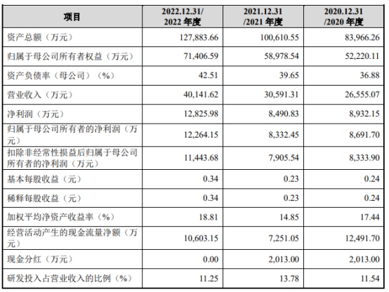 以上同期,公司净利润分别为8,932.15万元、8,490.83万元、12,825.98万元,归属于母公司所有者的净利润分别为8,691.70万元、8,332.45万元、12,264.15万元,扣除非经常性损益后归属于母公司所有者的净利润分别为8,333.90万元、7,905.54万元、11,443.68万元,经营活动产生的现金流量净额分别为12,491.70万元、7,251.05万元、10,603.15万元,净现比分别为1.40、0.85、0.83。