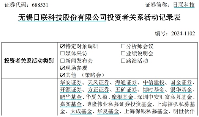 11月18日盘后,上市公司日联科技(688531.SH)发布了《投资者关系活动记录表》,披露公司接待了华安证券、天风证券、海通证券、中信建投等数十家机构调研,公司董事会秘书辛晨参与并解答投资机构代表提问。