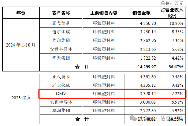 但另一方面,上市公司于重组报告书中则表示,行业优质客户对环氧塑封料供应商的筛选和考核标准严格,合格供应商认证周期较长,其认证程序复杂。而据此,可以合理推断标的公司与大客户的合作关系理应相对较为稳定、公司客户粘性理应较强的情况下,其前五大客户于报告期内出现较大变动,特别是客户GMV采购规模快速大幅锐减的合理性高度存疑。