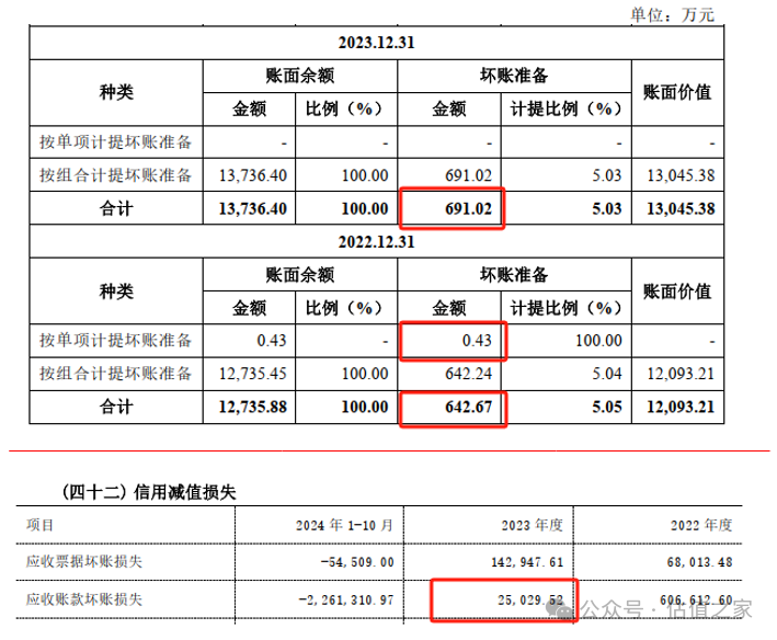 同时,标的公司是否存在通过调节各项减值损失来平滑各期公司营业利润,以实现其经营业绩持续增长的情况同样存疑。其中,应收账款相关信用减值损失确认方面,标的公司存在于报告期内将按组合法1-2年应收账款的坏账准备计提比例从2022年期末的34.08%降低至2023年期末的31.16%。同时,在其年末应收账款整体规模提升之下,标的公司截至2023年底的坏账准备计提金额也进一步攀升至为691.02万元,较2021年增长48.35万元。但令估值之家极为诧异的是,反观其同期所确认的应收账款相关信用减值损失却是一项正数收益2.50万元。叠加考虑到截至2022年底公司按单项计提坏账准备的金额也仅为0.43万元的情况下,标的公司于2023年所确认的应收账款信用减值损失是否合理则高度存疑。