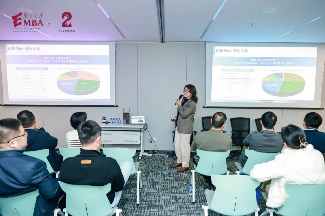 同时,复旦大学EMBA2022级2班同学也做了相关分享:兆易创新的运营总监赵媛媛介绍了存储芯片的市场格局和竞争趋势,上海半研信息咨询有限公司首席分析师徐可带来了汽车产业链的赛道分享和机会探讨,红杉资本合伙人杨兆国阐述了近二十年半导体的格局和变化。整个研讨会,大家深入探讨半导体产业生态圈,同时畅谈中国经济的未来趋势。
