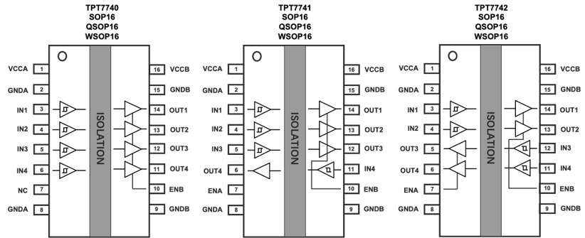 四通道加强型数字隔离器TPT774x,拥有加强的隔离电压能力,可支持40年工作电压范围内的生命周期;同时兼具业界领先的EMC能力和支持高速通讯速率,可与业界主流型号Pin-to-Pin兼容。