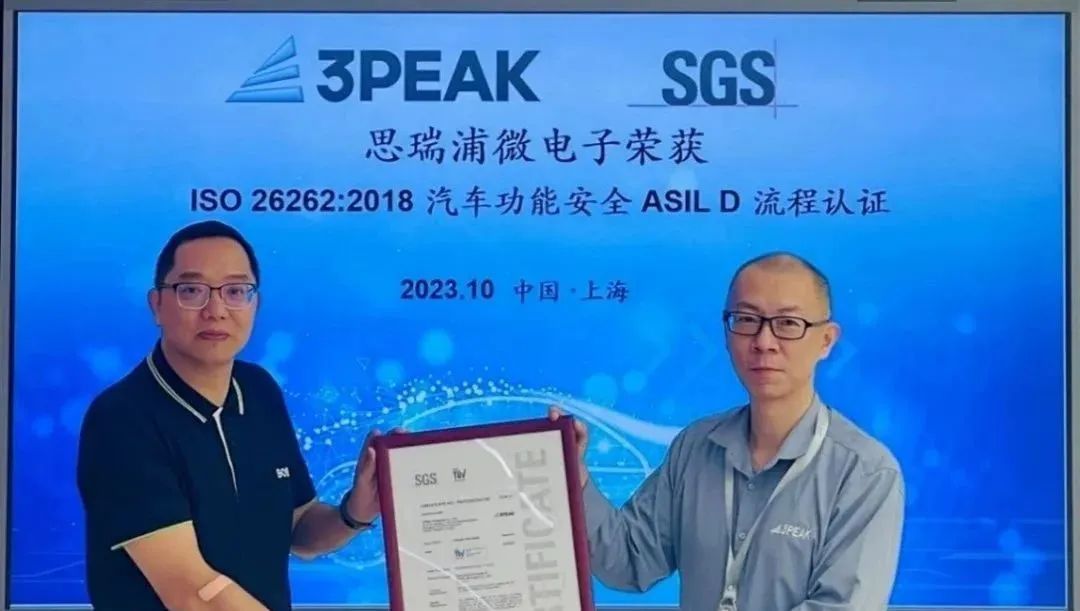 思瑞浦获ISO 26262:2018汽车功能安全最高等级ASIL D流程认证!