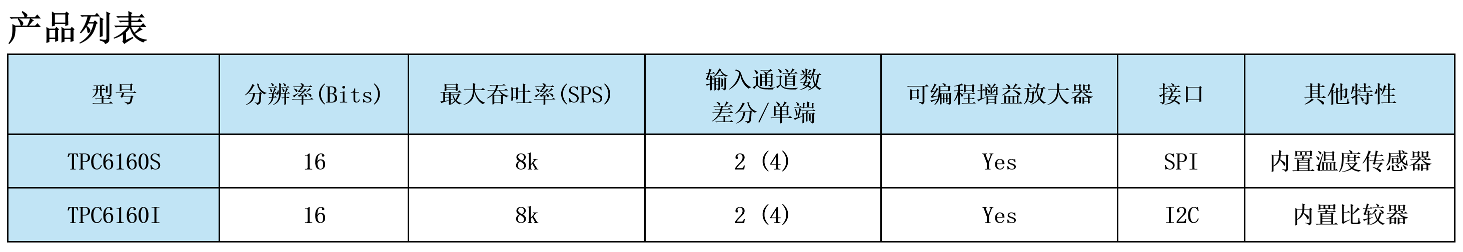 TPC6160S/6160I产品特性