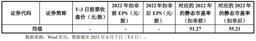 (可比上市公司的市盈率水平,图片来源:上市公告书)