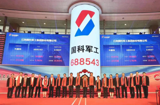6月21日,江西国科军工集团股份有限公司(以下简称“国科军工”,证券代码“688543”)在上交所举行上市敲钟仪式,正式登陆科创板,是南昌市第2家科创板上市公司。省政府办公厅、省委军民融合办、省国资委、省金融监管局、江西证监局等有关领导出席上市仪式。