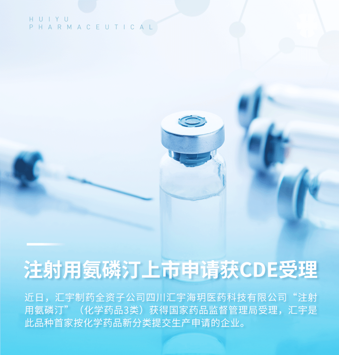 近日,汇宇制药全资子公司四川汇宇海玥医药科技有限公司“注射用氨磷汀”(化学药品3类)获得国家药品监督管理局受理。