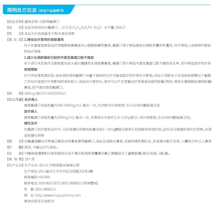 拓展阅读:汇宇海玥“注射用氨磷汀”获批上市