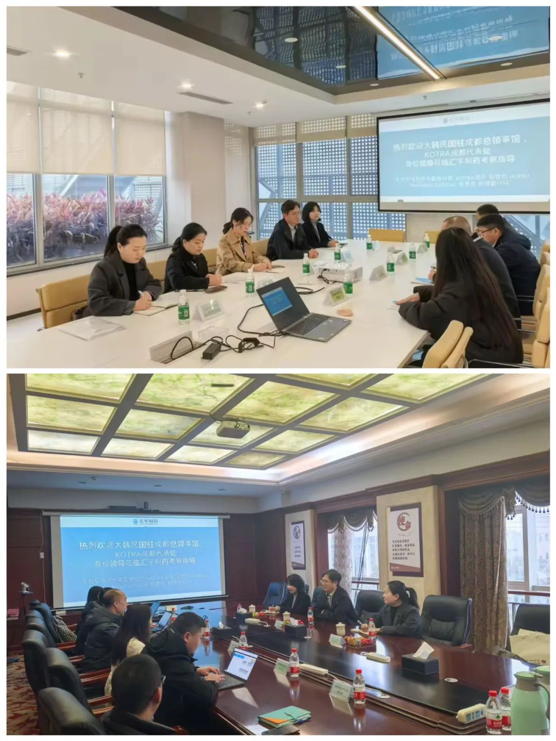 2024年3月14日,大韩民国驻成都总领事馆和大韩贸易投资振兴公社(KOTRA)成都代表处的各位领导,在尹斗姬商务领事和边龙燮馆长的带领下,莅临四川汇宇制药股份有限公司三大基地考察指导,先后参观了成都汇宇研发基地、内江汇宇第二生产基地(原料药)、内江汇宇生产基地(制剂)。