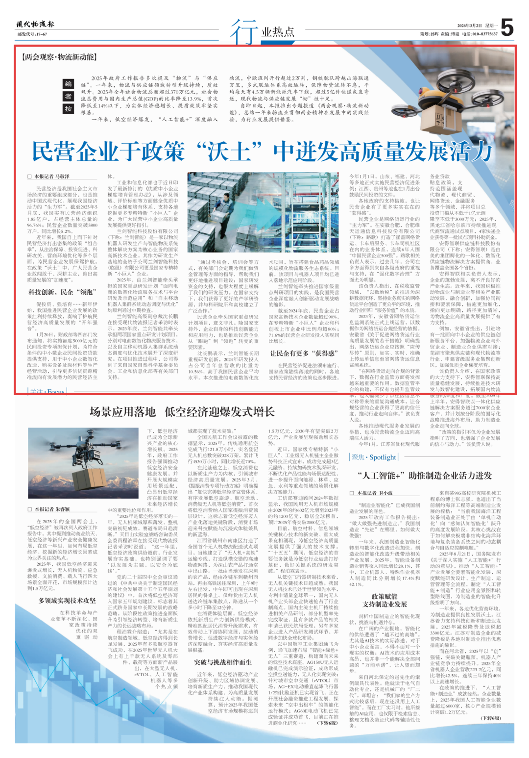 正值2026年全国两会召开前夕,《现代物流报》全媒体特别推出《两会观察·物流新动能》系列报道专栏。