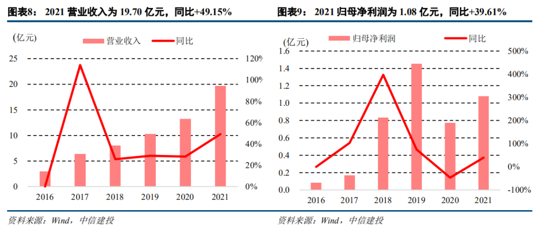 公司业绩迎来加速向上的拐点。2021年公司营业收入为19.70亿元,同比增长49.15%。2021年公司归母净利润为1.08亿元,同比增长39.60%。展望未来,随着公司锂电业务的快速成长以及光伏业务的突破,公司有望迎来业绩和盈利能力的同步提升。