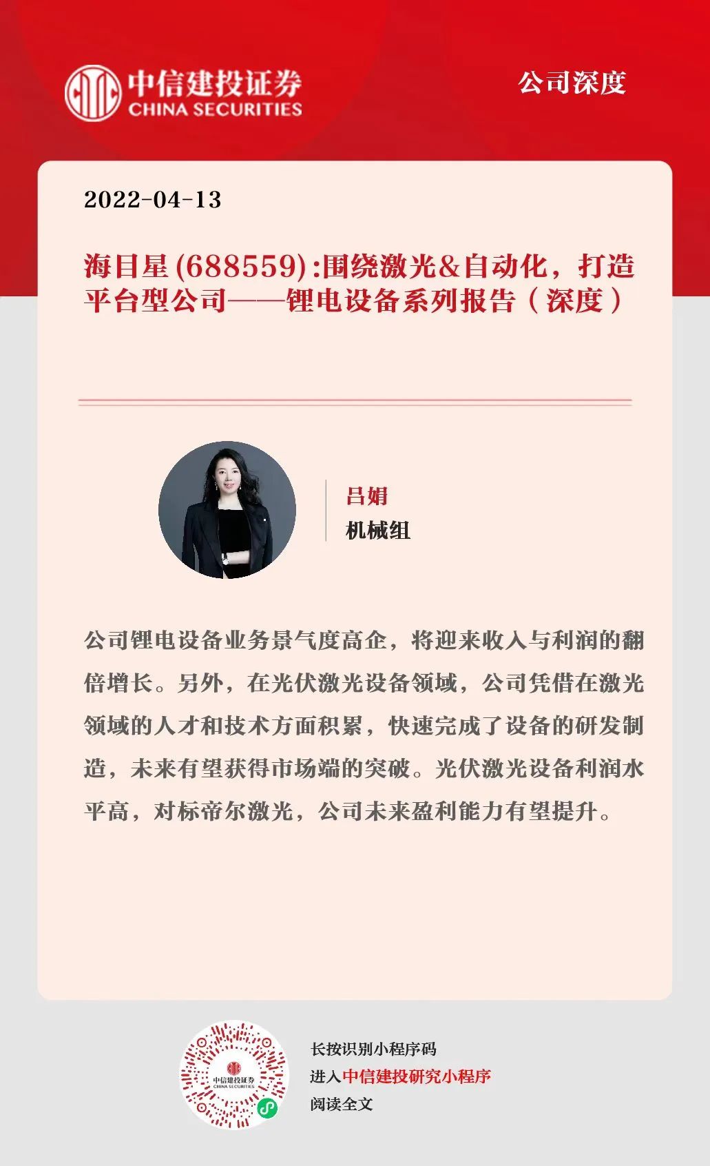 证券研究报告名称:《海目星(688559):围绕激光自动化,打造平台型公司》