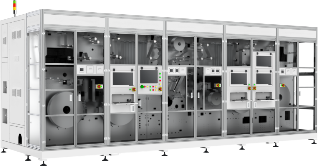 具体产品参数上,方形切卷一体机设备产能≥5PPM(极片长度16m),激光切割速度1.5m/s,极片对齐度≤±0.3mm,极耳对齐度≤±3mm,匀速张力波动≤±4%,良率≥99.5%。该设备已经在客户端实现量产,同时具备了批量量产的能力。