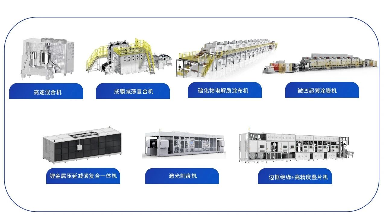核心工艺装备全覆盖:目前已实现全固态电极制备、全固态电解质膜制备、转印复合、裸芯装配、等静压、化成分容等关键设备的全覆盖。