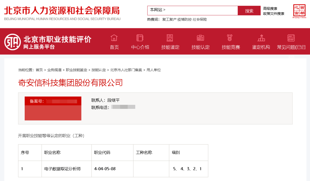 2023年3月奇安信通过北京市人社局电子数据取证分析师企业内部职业技能等级认证资质。成为国内首批对内开展电子数据取证分析师单位。