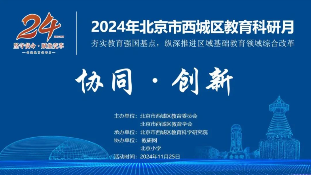 11月25日,北京市西城区教育科研月活动开幕式在北京小学举行。中国教育学会常务副会长吕玉刚,北京市教委副主任、北京青少年创新学院院长王攀,北京教科院院长、北京青少年创新学院院长冯洪荣,北京师范大学副校长汪明等10所高校院系和科研院所领导以及10个博物馆、科普基地和高新企业等资源单位领导,西城区委副书记、代区长郅海杰,区委副书记缪剑虹出席。