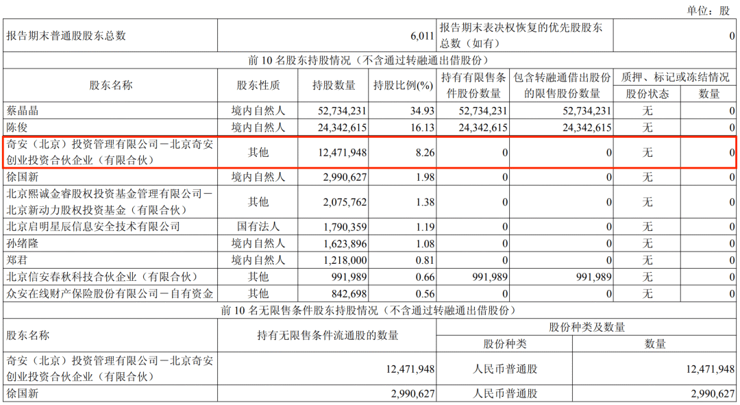 奇安创投位居「永信至诚」第三大股东(来源:2025 年第三季度报告)。