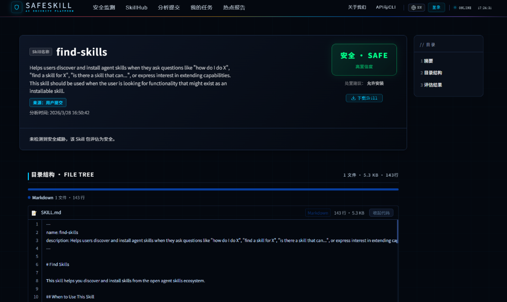 ?? 新功能二:SafeSkill Hub——可信的Agent Skill安全生态市场
