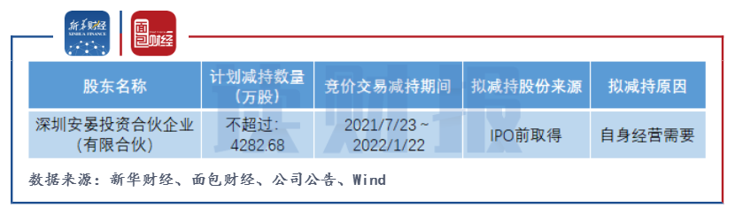7月18日,公司发布持股5%以上股东减持股份计划公告,深圳安晏计划通过大宗交易方式减持其持有的公司股份不超过4282.68万股,占公司总股本的比例不超过4%,此次减持计划自公告披露之日起3个交易日后的6个月内进行。