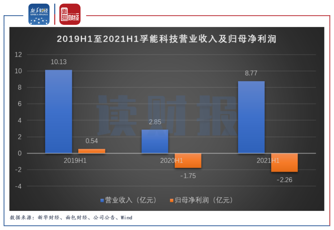 图1:2019H1至2021H1孚能科技营业收入及归母净利润