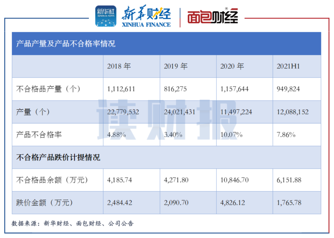 图4:2018年至2021年上半年孚能科技产品不合格率