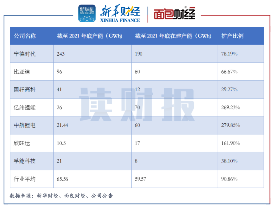 图3:2021年孚能科技与同行竞争对手产能扩充情况
